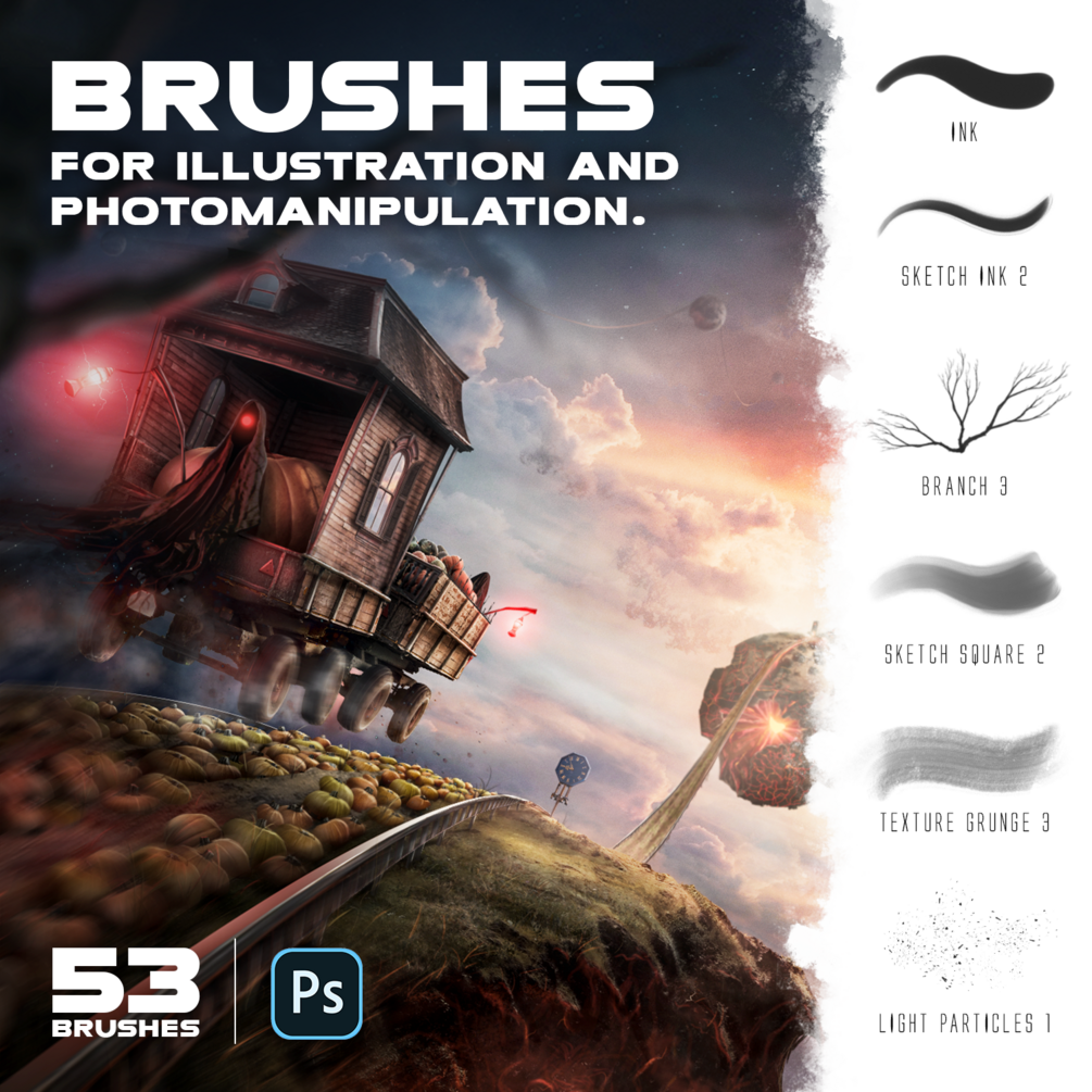 You will have 53 very useful brushes for illustration or photomontage - Compatible with Photoshop